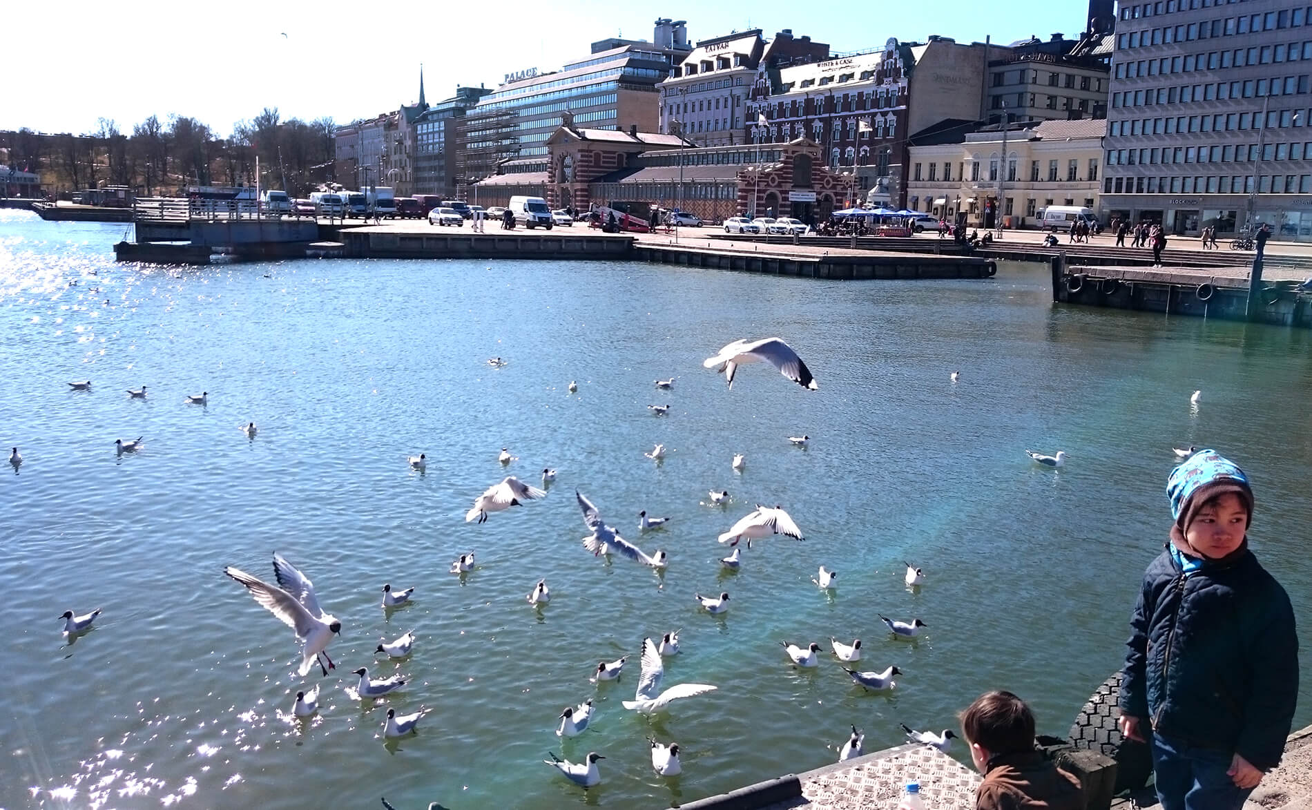 Le port de Helsinki, où se tient le marché (dans le bâtiment que l'on voit sur le quai en face).